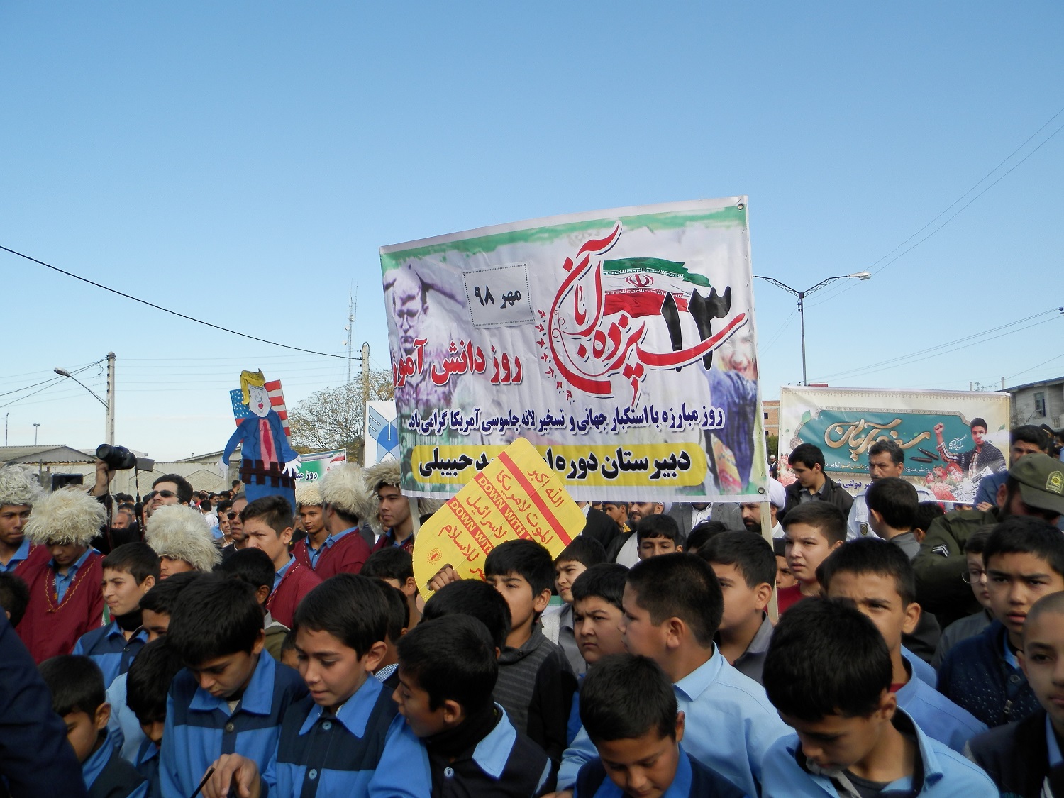 ترکمن سسی - راهپیمایی یوم الله 13 آبان ماه روز ملی مبارزه با استکبار جهانی امروز در شهرهای مختلف استان گلستان با حضور اقشار مختلف مردم و مسئولان استانی برگزار شد. تصاویر راهپیمایی امروز 13 آبان ماه 1398 در شهر آق قلا را می بینید.