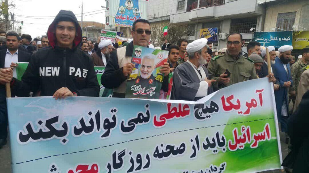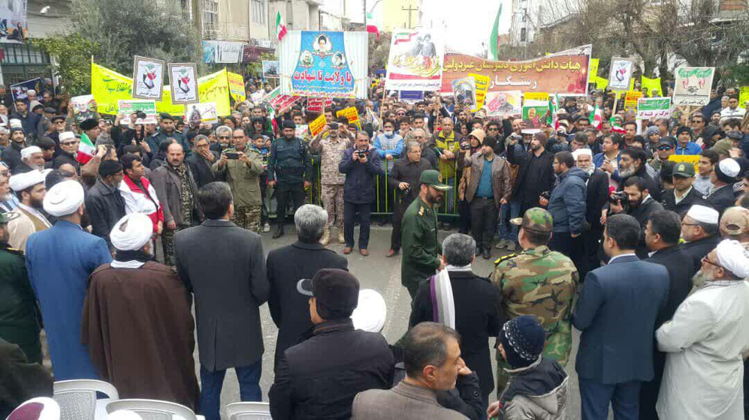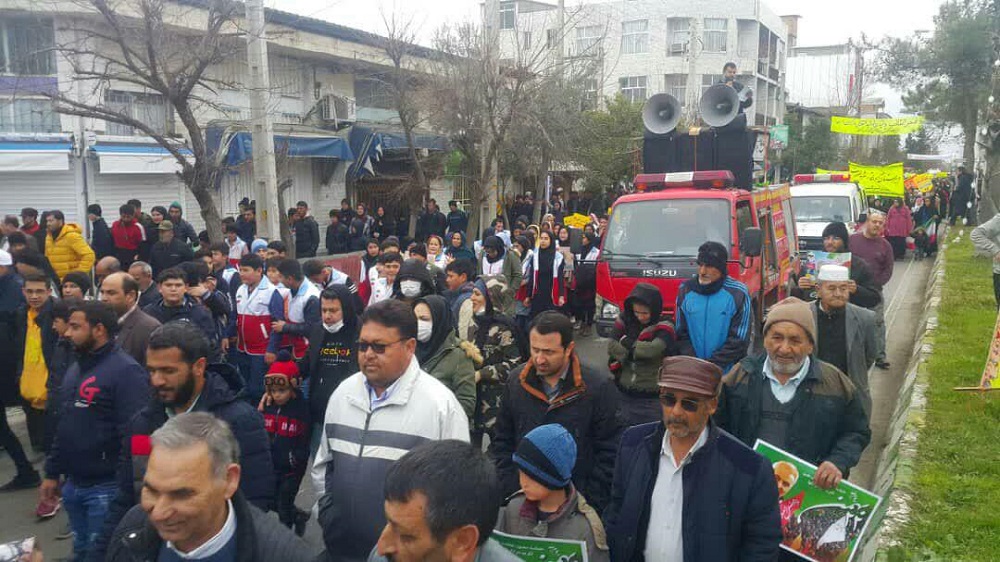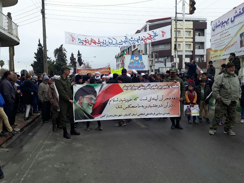 ترکمن سسی - همزمان با چهل و یکمین سالگرد پیروزی انقلاب اسلامی، راهپیمایی مردم گلستان برای اثبات وفاداری به انقلاب و گرامیداشت ۲۲ بهمن در هوای ابری و بارانی با حضور انبوه و پرشور مردم در شهرای مختلف استان برگزار شد.