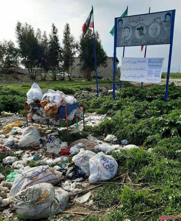 زباله های انباشته و لبریز شده از سطل های زباله روستای سارجه کر که خود این زباله ها عامل بیماری و آلودگی است.
