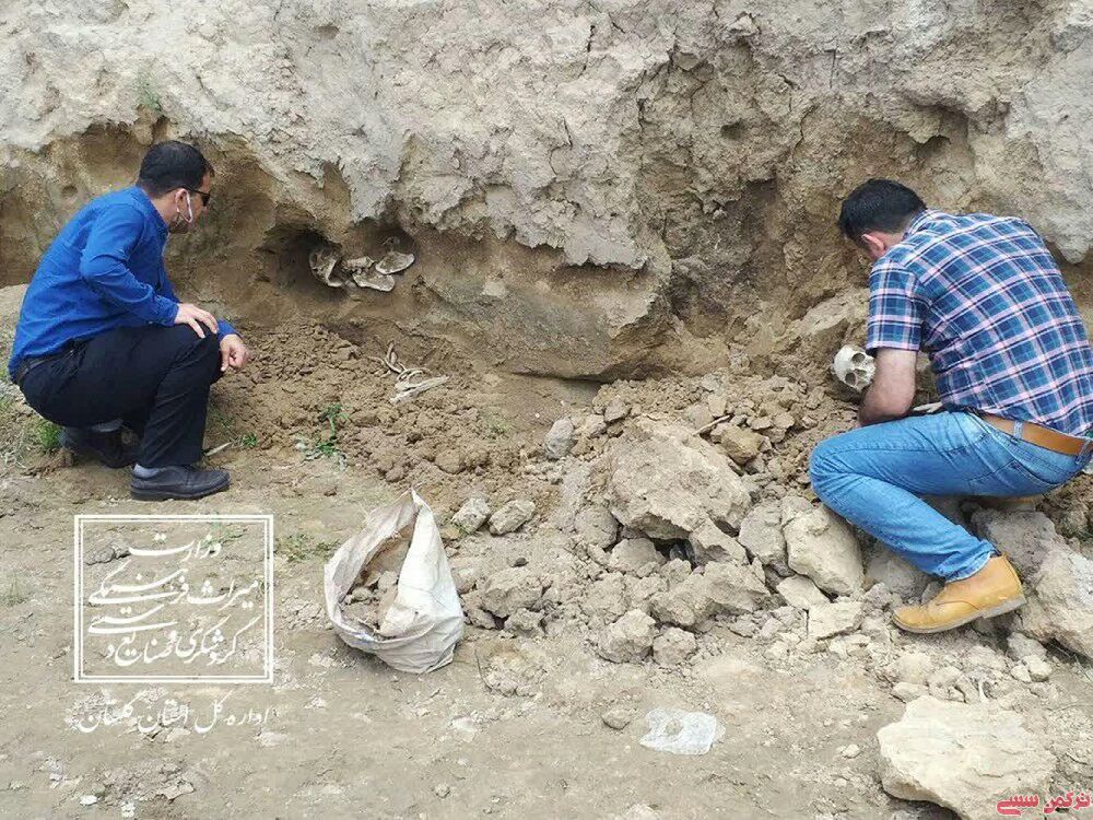 با توجه به بارندگیهای اخیر و فرسایش خاک دیوار و ریزش آن در چند روز اخیر، بقایای دو اسکلت انسانی پدیدار شده است.