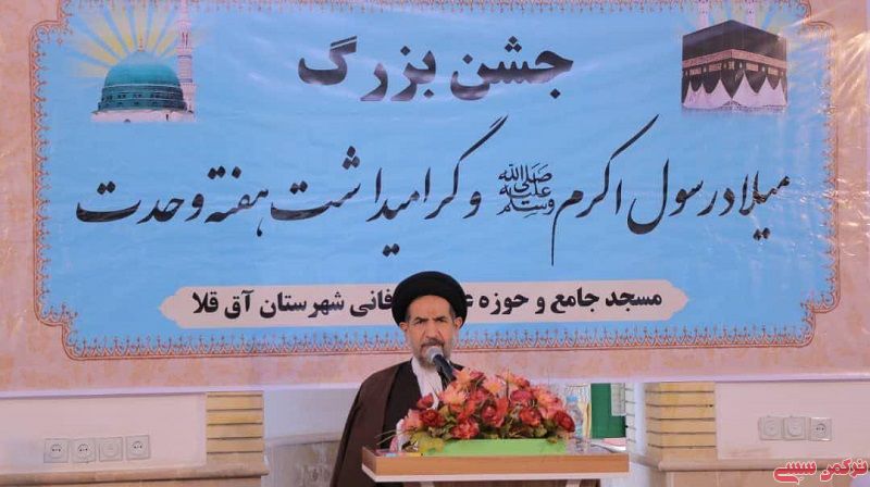 به گزارش پایگاه خبری ترکمن سسی به نقل از خبرگزاری شبستان ، حجت الاسلام «سید محمد حسن ابوترابی فرد» ظهر امروز(پنجشنبه 8 آبان) در مراسم گرامیداشت هفته وحدت در شهرستان آق قلا اظهار کرد: در چند قرن اخیر ما در هیچ یک از صفحات تاریخ صفحه درخشانی از وحدت امت اسلام را مانند صفحه زیبا و درخشان تاریخ انقلاب اسلامی مشاهده نمی کنیم.