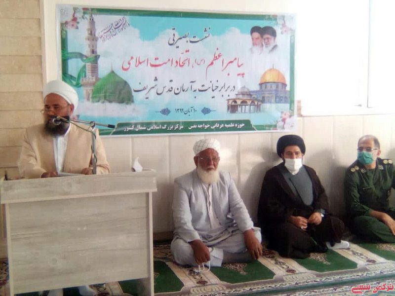 خواجه نفس : ترکمن سسی - نشست بصیرتی پیامبر اعظم (ص) ، اتحاد امت اسلامی در برابر خیانت به آرمان قدس شریف ظهر امروز شنبه 10 آبان ماه با حضور مدرسین، روحانیون و طلاب در حوزه علمیه عرفانی خواجه نفس برگزار شد.
