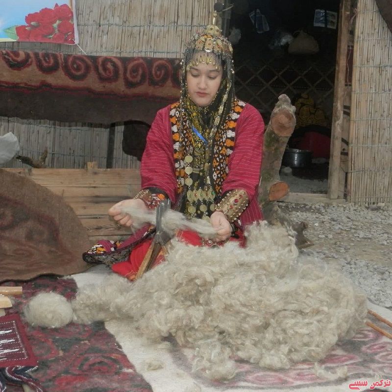 ترکمن سسی - در دهه های قبلی زنان و دختران ترکمن ، پشم گوسفند را همانند آنچه در تصویر می بینید با شانه های مخصوصی حلاجی می کردند.
