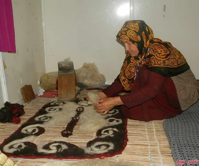 گلستان : ترکمن سسی - سال ها آموزش و تجربه لازم است تا با هنرمندی تمام طرح و نقوش نمد را به زیبایی بچینید تا حاصل کار نمدی قشنگ از آب درآید.