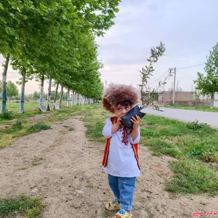 ترکمن سسی - اهدای نمادین نهال زیتون به یونسکو توسط نوه مهندس عبدالمجید زیتونلی، عضو خردسال پیشگامان سبز زیتونلی.