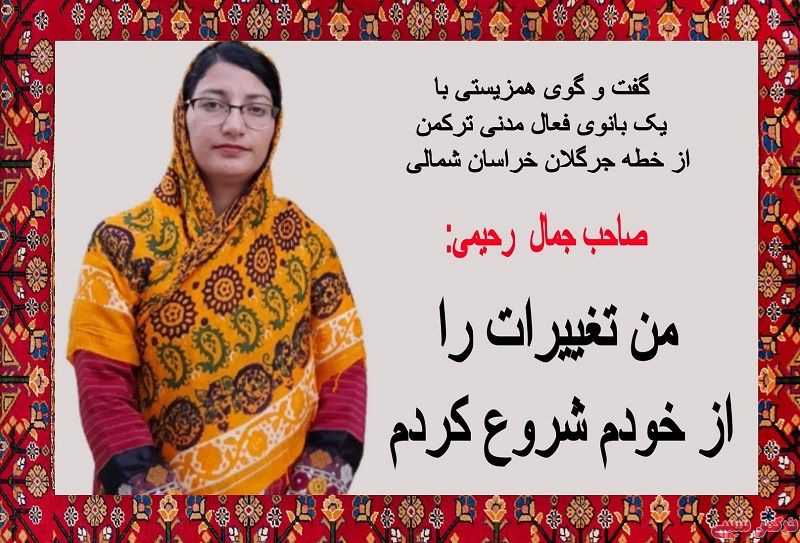 علت اینکه صاحب جمال رحیمی را برای این گفت و گو انتخاب کردم بطور قطع خبرنگار بودن او نبود، بلکه او را انتخاب کردم بخاطر اینکه اولا او یک زن است، مثل میلیون ها زن قهرمان ایرانی که درهمیشه تاریخ، استوار ایستاده و حماسه آفریده و می آفرینند، ثانیا او یک زن ترکمن است! زنی از صحرای ترکمن! زنی از جنس اصالت و شرافت! زنی از جنس متانت و زیبایی! و زنی از جنس مقاومت و پایداری!