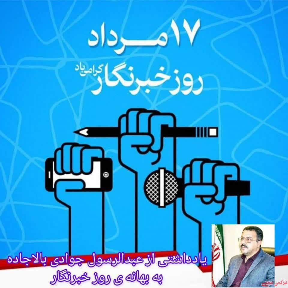 ترکمن سسی - عبدالرسول جوادی بالاجاده - ۱۷ مرداد سالروز پاسداشت و تکریم و تجلیل از تلاشهای رسانه ای خبرنگاران، فرصتی مغتنم برای قدردانی از خدمات رسانه ای این قشر می باشد و شاید فرصتی برای نگاهی متفاوت از شغل سخت و پر مسئولیت می باشد.