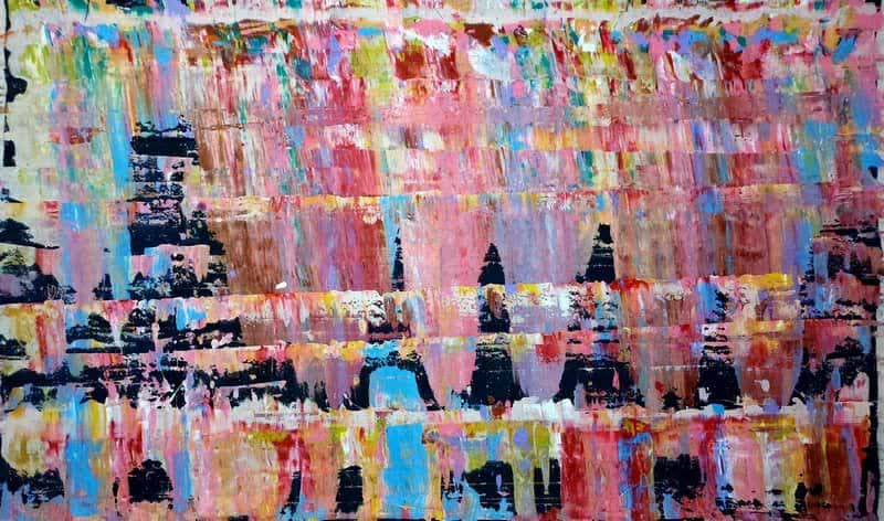 ادیب آیین در یک انحراف چشمگیر از رئالیسم، به انتزاع پرداخت، شیوه ای از بیان که به او اجازه داد تا جوهر خود نقاشی را کشف کند. «نقاشیهای انتزاعی» او با ضربههای قلم مو وکششی، لایههای رنگ و حس پویایی مشخص میشود که به جای نمایش، احساسات را تداعی میکند. این آثار بینندگان را به فراتر رفتن از محدودیت های دنیای مادی و غوطه ور شدن در تجربه درونی رنگ و فرم دعوت می کنند.