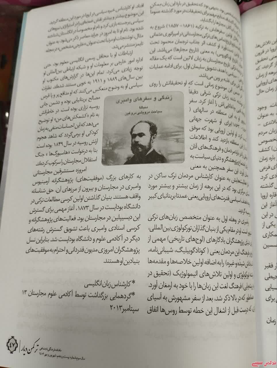 ترکمن سسی - مقاله زیر با عنوان آرمینیوس وامبری ( ۱۹۱۳- ۱۸۳۲) توسط گیورگی هازای - پال فودور برای گردهمایی بزرگداشت توسط آکادمی علوم مجارستان ۱۳ سپتامبر ۲۰۱۳ نگاشته شده و توسط سلیمه رجایی به فارسی ترجمه شده است.