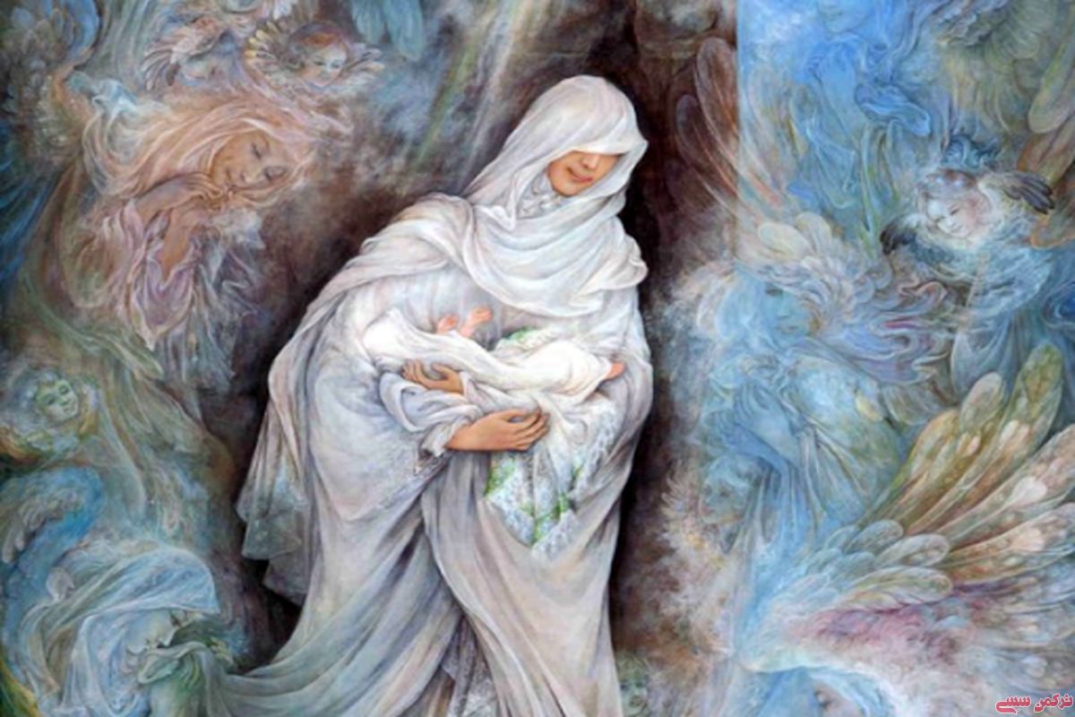 قرآن به داستان میلاد ایشان از مادر پاکش حضرت مریم(س) که از ۴ بانو برتر عالم هست، اشاره می کند.
